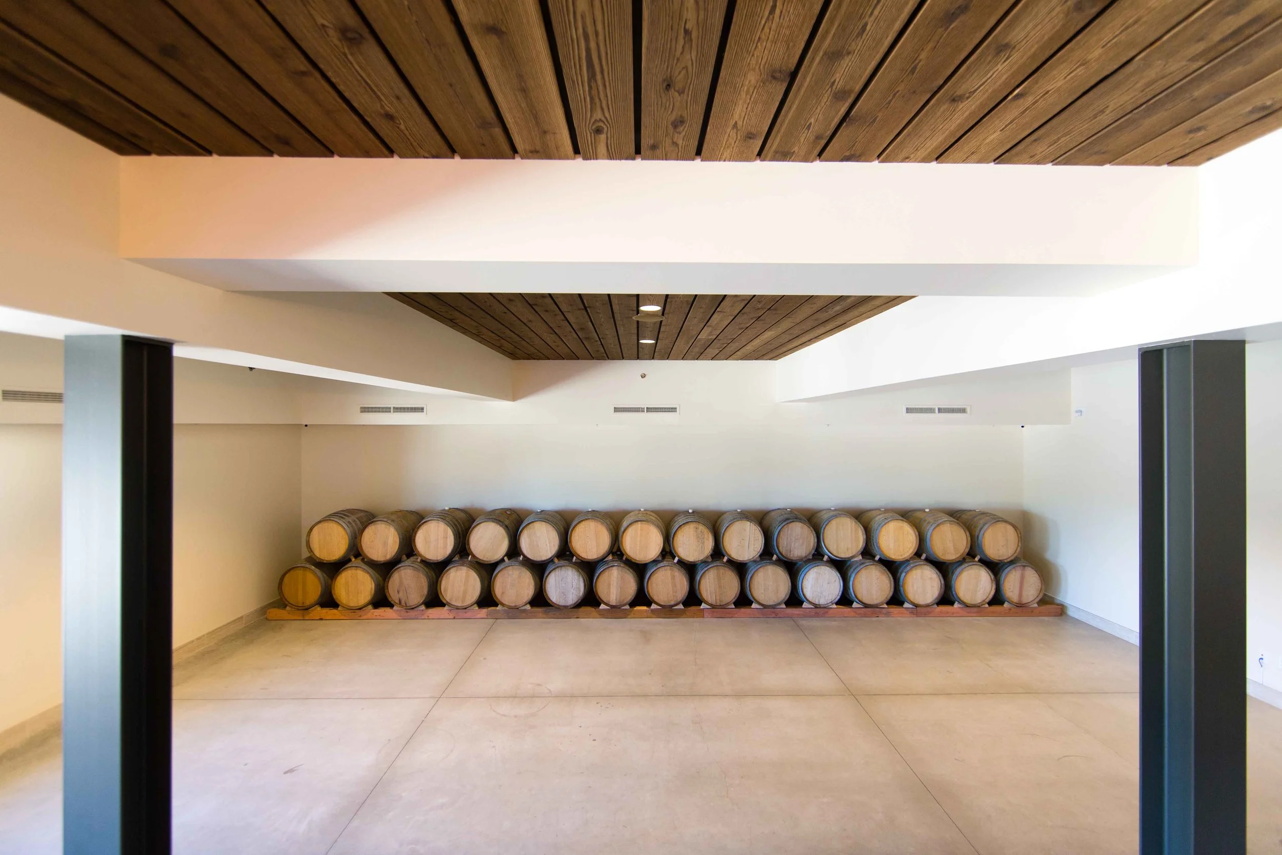 Interiors, including the wine tasting room, seating areas and conference rooms, create a welcoming presence. The color and materials palette took inspiration from the existing agrarian vernacular blended with contemporary details, resulting in a contemporary agricultural aesthetic. This blend of old and new created a cohesive and functional campus and gave a fresh look to one of the oldest wineries in the region.