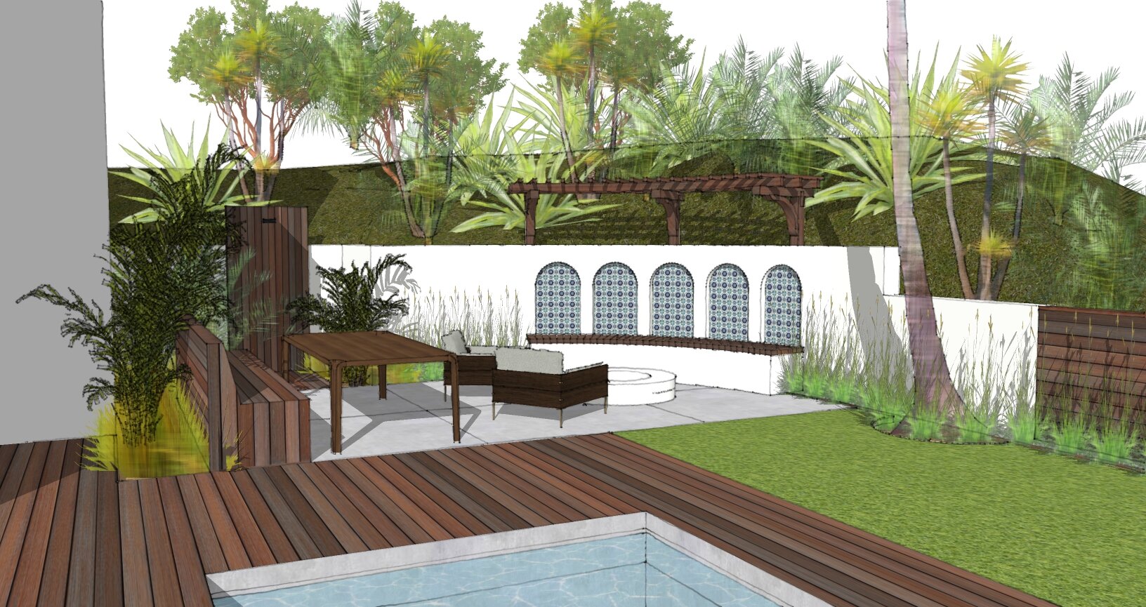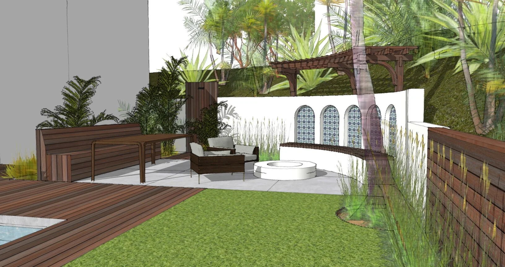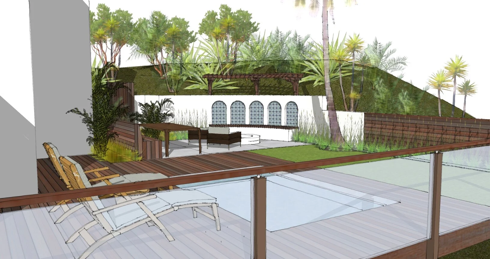 A residence nestled on the Cayucos hillside needed usable outdoor entertainment and leisure space which led to an exciting design opportunity. Programming included a pool, fire pit, gathering areas, outdoor shower, and child-friendly play spaces to complete their warm and inviting Mediterranean-styled home. The design team paid special attention to the site's context and vistas to develop a design that did not obstruct but rather highlighted the property. A coastal palette for planting as well as exterior finishes were chosen to complement the architecture and essence of the space.