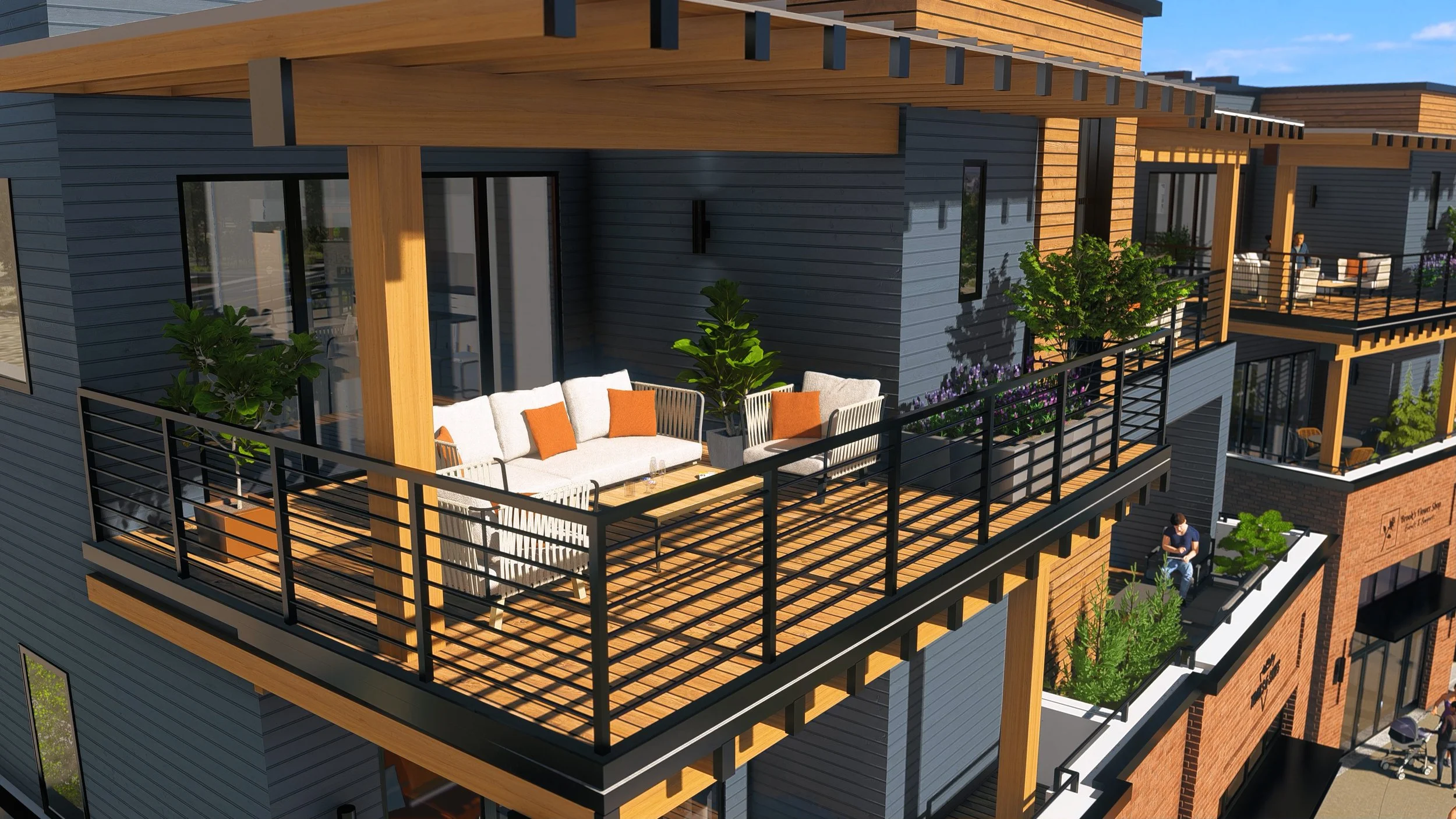 This project includes the design of five, three-story mixed use buildings that surround The Corner, a central plaza of the Discovery West development. On the ground floor of each building is a commercial space, and a garage/carport parking for the residential units. Above each commercial space is a 3 bedroom residential unit and a 2 bedroom ADU.