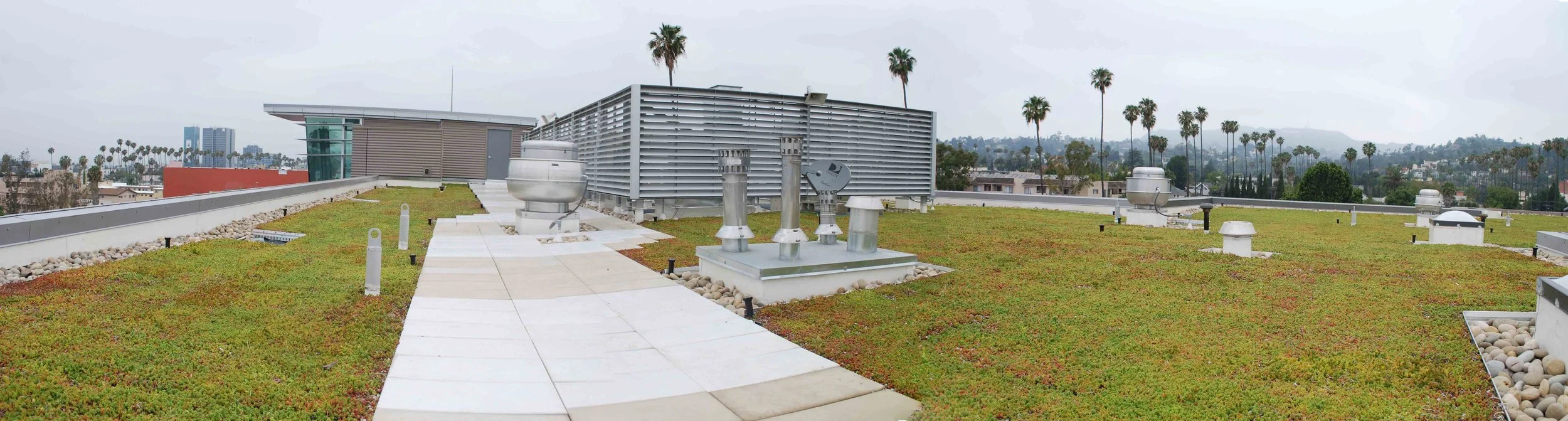 Station 82 features a vegetated roof, which achieves the City’s requirements for stormwater management and greatly lowers heat gain on the roof of the building.
