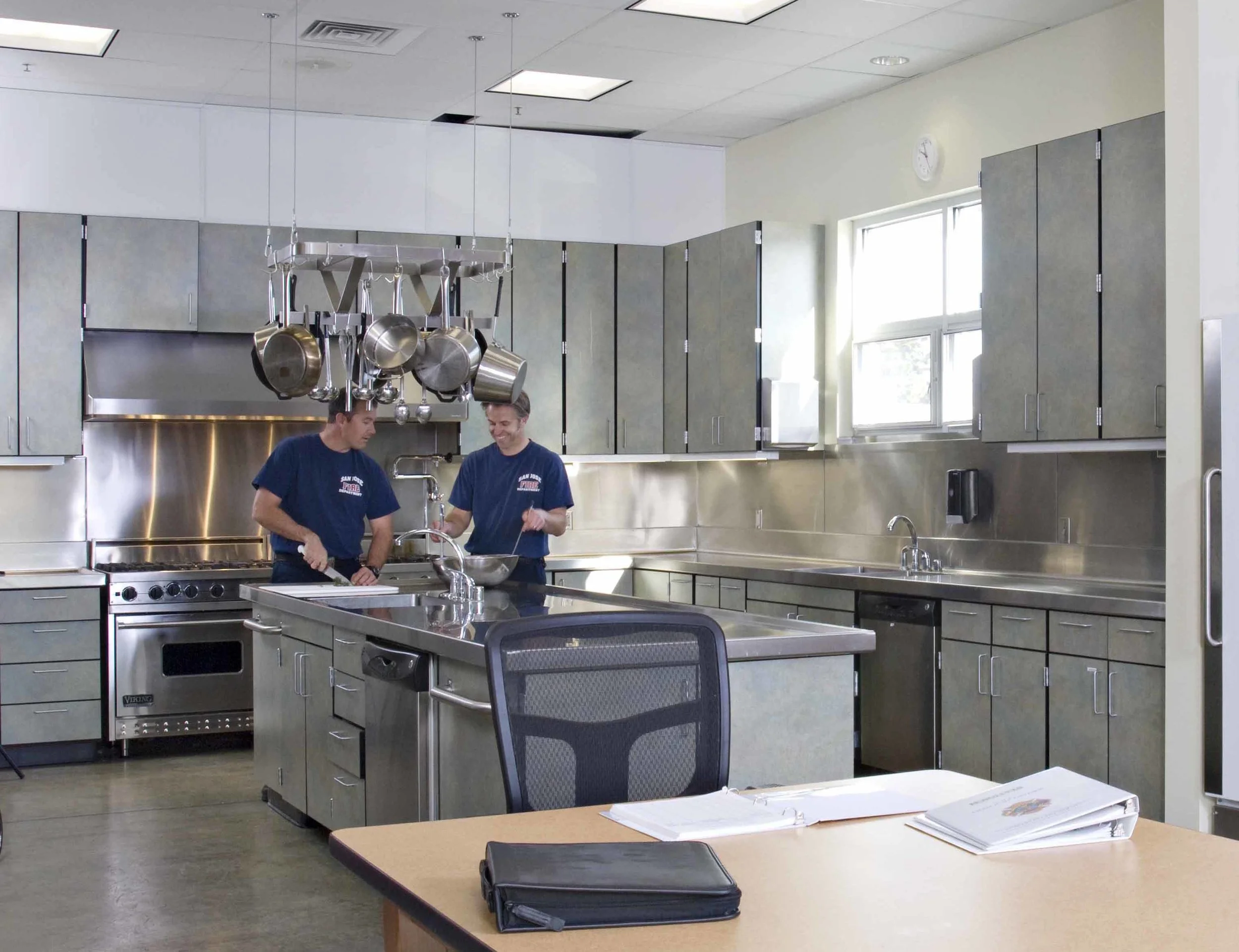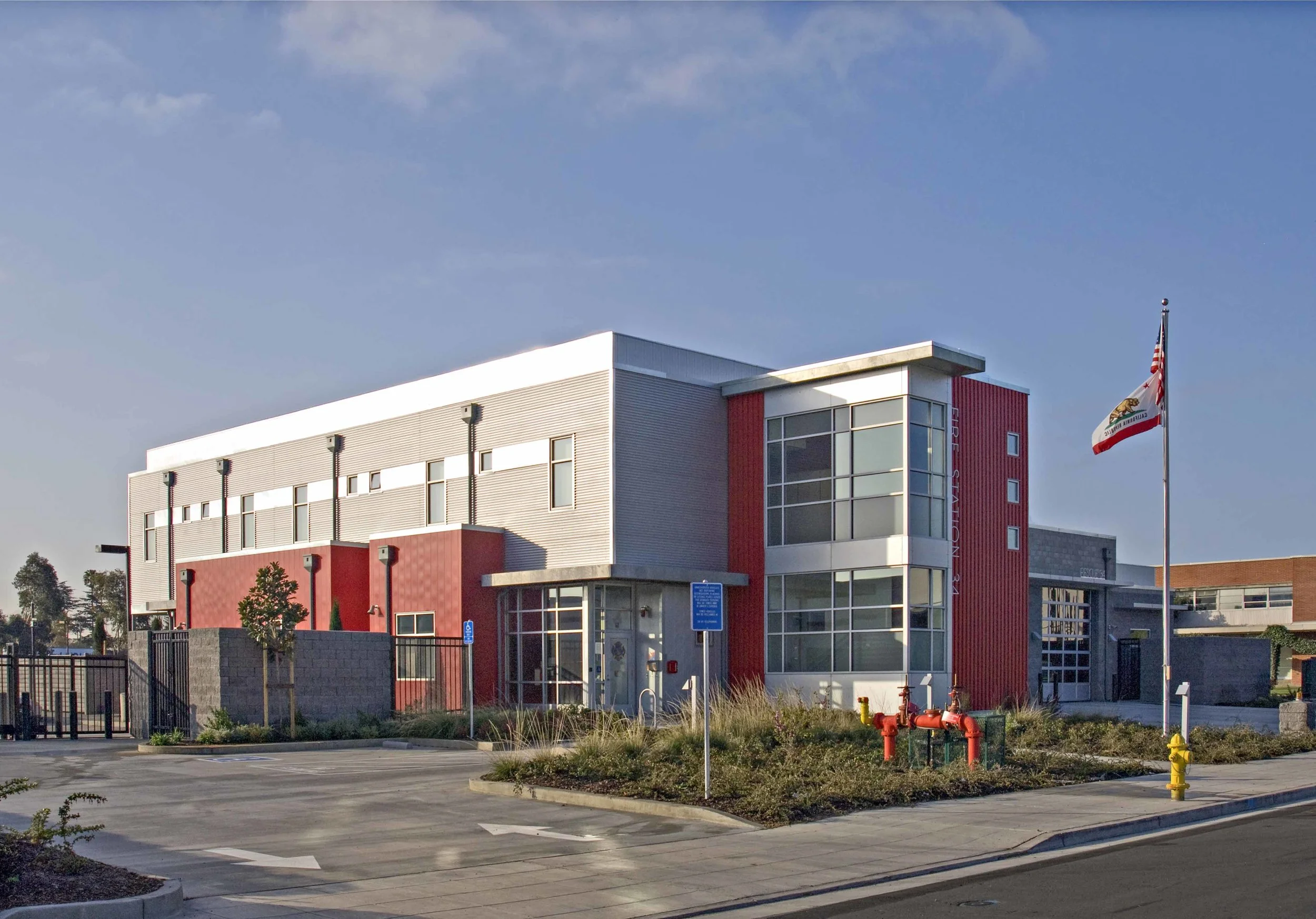 Station 34 was sited to mitigate existing response time issues created by multiple freeway cutoffs on the east side of town in an industrial area. The station accommodates an engine company and truck company in 12,000 SF. Due to the tight urban site, the station is a two-story building with three apparatus bays, suppression support, administration offices, and firefighter living quarters on the first floor. Firefighter sleeping quarters and bathrooms are on the second floor.